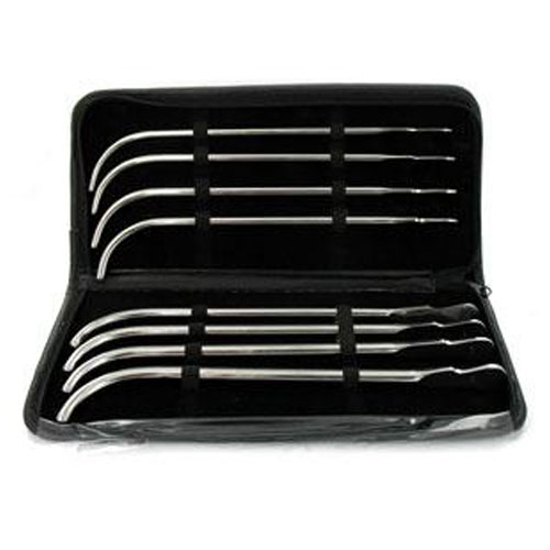Loading... Please wait...The Van Buren sounds are 27cm (10.5 inches) long and come with a distinctive curve near the tip making them J-shaped. This J-shape not only provides extra stimulation, it also prevents the sound from "getting lost". This Van Buren Sound Kit comes with eight sounds ranging from 8FR to 22FR. The sounds are presented and protected in a velvet-lined zipper case. Ideal for men who are experienced in urethral play.